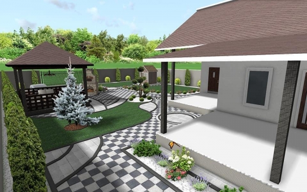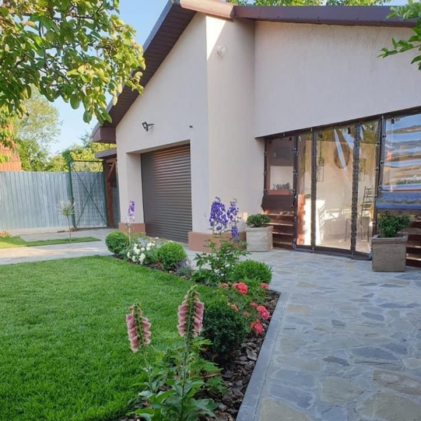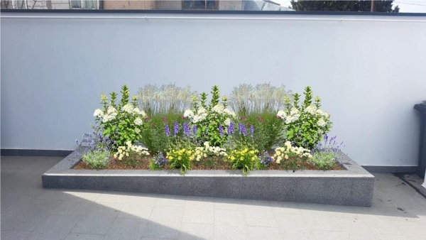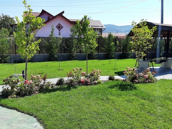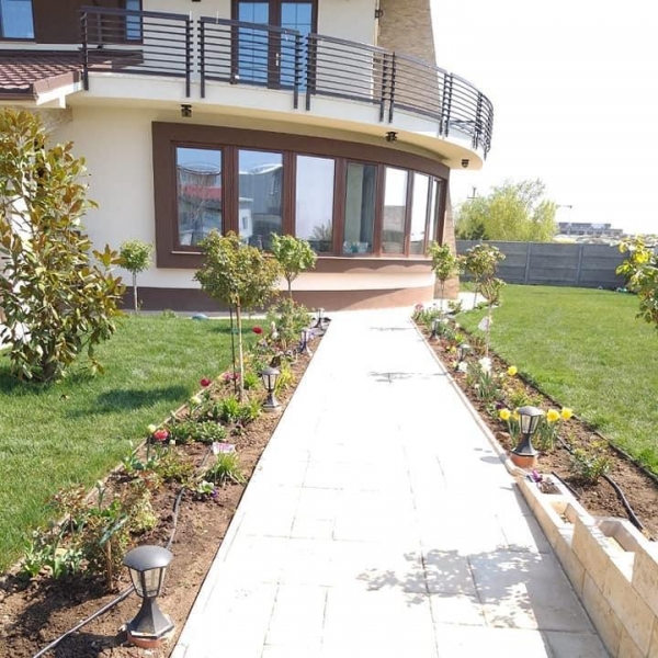 Plantari arbori, arbusti si flori. Gazonul, pietrisul decorativ/pavajul, formele geometrice create de acestea sunt excelent puse in evidenta prin prezenta unui arbore solitar, aranjamente de arbusti decorativi si flori, plante perene si de sezon.